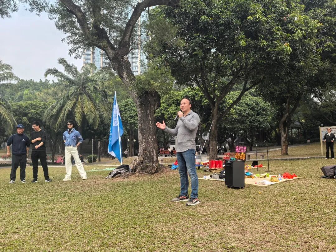 在中山公园百年榕树下的绿茵草地上,在体育部教师带领下,教职工一起跳起健身操进行热身,开展同心击鼓、趣味跳绳、踢毽子、飞盘等趣味体育项目,在欢声笑语中释放压力、增进沟通。新年歌会环节精彩纷呈,许博、寸熙带领教工合唱队深情献唱,大榕树下独唱与吉他伴奏轮番登场,悠扬的歌声穿过绿绿的草坪,展现了未来学部教职工多才多艺、积极向上的良好风貌。大家跟随学部旗帜沿逸仙湖畔开展健步走活动,大家迈着轻快的步伐,呼吸清新空气,欣赏湖光美景,在运动中感受自然之美、凝聚前行之力、迎接新年新征程。学部为教职工送上了新年礼物和美好的新年祝福。